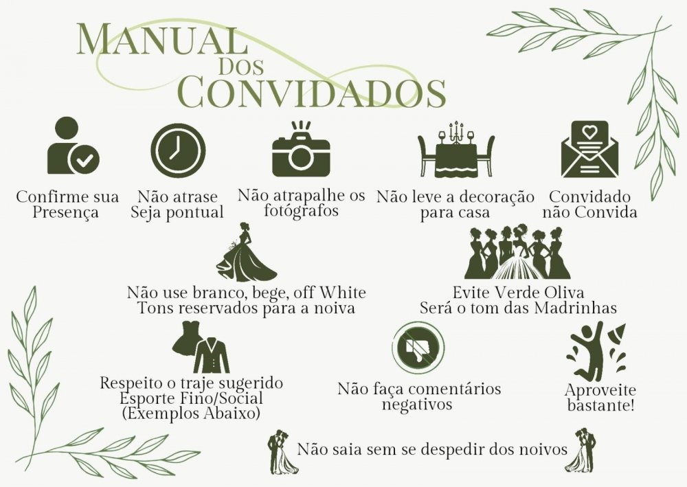 Para que tudo saia como sonhado e planejado, pedimos a colaboração de todos quanto as orientações a seguir.